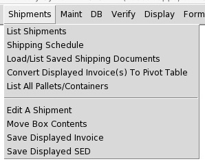Each "major" database function (like inventory info, experiment info, addresses, shipments, etc.) have an 'edit' form and a 'list' form. The listing shipments form is the next picture.
