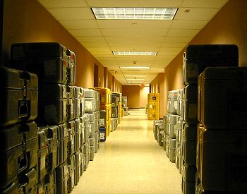 Below are some of the shipping boxes for this experiment in the hallway at UTEP. In all there was about 2000 kilograms of equipment in 97 shipping cases.