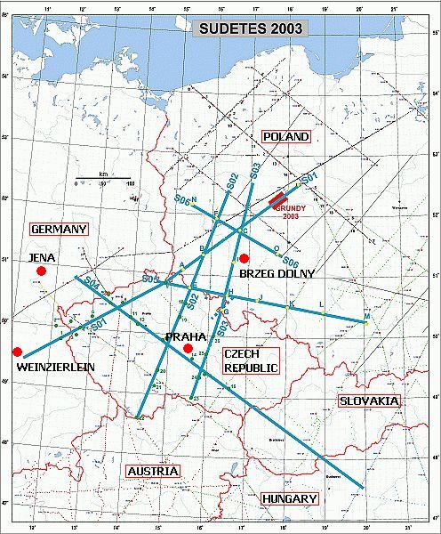 The equipment took about a week to arrive at the Geofyzikální Ústav (Geophysical Institute) in the city of Praha, Czech Republic. When the equipment got there the boxes for each country where grouped together so they would be ready to be picked up by people from the various educational and scientific institutions in each country. The pile on the left went to the field center in Poland, and the pile on the right was my equipment that was headed for Germany. All of the equipment arrived the day before I got there.