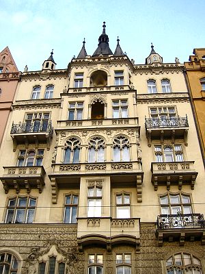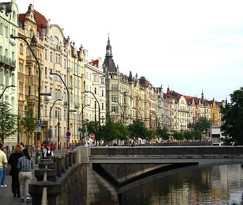 Below is Masarykovo Nábřeží (Masarykovo Street) just down (continuing to the right in the picture above) from the National Theater. From what I could see most of these buildings were businesses on the ground floor with living quarters on the other floors. What a great place to live