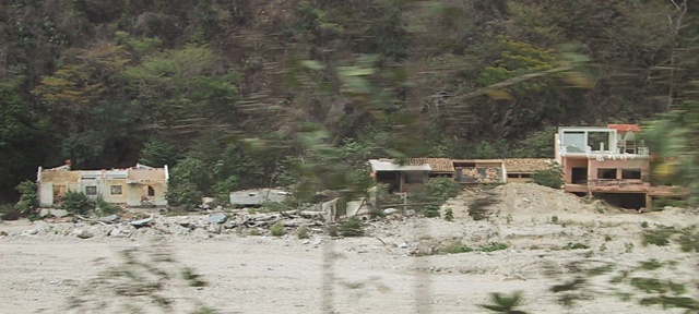 What wasn't low enough to be buried instead had the ground swept out from under it. Possibly because this river was much shorter and smaller than the one in Caraballeda there were hardly any huge boulders, and little evidence of large trees. This was closer to a mud slide.