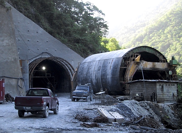 The Venezuelans were pretty busy people. They were in the process of building a railroad line through the mountains south of Caracas. And I mean through them. I must have seen at least a dozen tunnels in the area where we were deploying. The longest tunnel was over 6 kilometers long. The day we were there deploying instruments it was closed because of construction work. It took over an hour, with a large chunk of the distance by autopista (expressway), to get from the area at one end of the tunnel to the area near the other end so we could continue deploying. The train that was to use the system of tunnels and bridges was going to be carrying automobiles and trucks. The organization that was putting all of this together was Ferrocar. Below is a picture of just one of the tunnels and the machine used to build it.