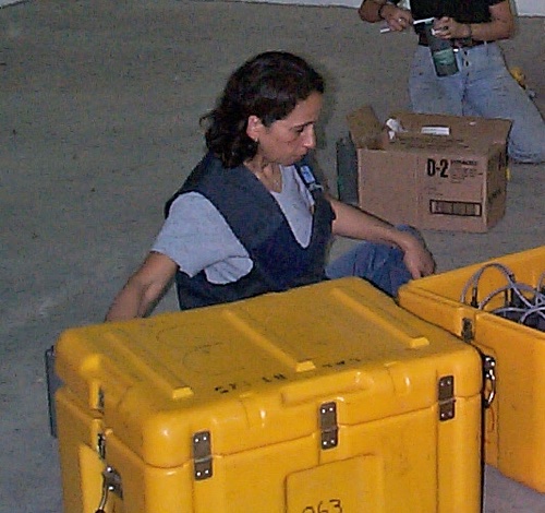In closing, I'd like to thank the Presidenta of FUNVISIS, Nuris Orihuela Guevara, for her help in getting a lot more than I know about accomplished, and for even helping out at 2 o'clock in the morning to get the equipment cleaned up and packed up for shipping back to the USA (below). I'd also like to thank Michael for making it a fun trip by showing us a bit more of Venezuela than just the places where we were working, and for also for letting me borrow a few of his photographs for these pages. And last, but not least, I'd like to thank all of the little people from FVIS and the other institutions that helped out with the work, and also with the fun.
