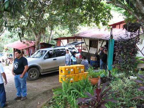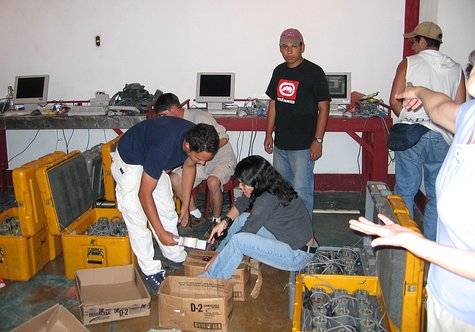 Below is packing up and heading out day. We were in San Agustin for about nine days. During this time the instruments were deployed near San Agustin, picked up, downloaded, reprogrammed, and redeployed along a line about 100 kilometers to the west. This second deployment was along the same line south of Barcelona where the Texans were deployed during the July 2001 experiment. After this it was back to Caracas. The hard part of the experiment was over.
