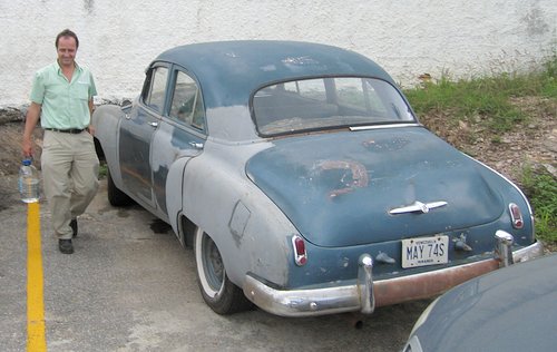 Michael Schmitz, the FUNVISIS staff scientist that was a collaborator on the experiment, and his 1950 Chevrolet. He uses this car, instead of a shiny new one, because no one would want to steal this one. It must work, because he had this same car in 2001.