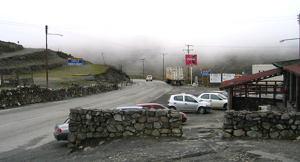Coca-Cola at the top of the world. There was a store and cafe at the pass where you could duck in for a hot chocolate. The picture below was taken from the statue. The chapel was on top of the hill on the left. Our Toyota Yaris is in the parking lot.