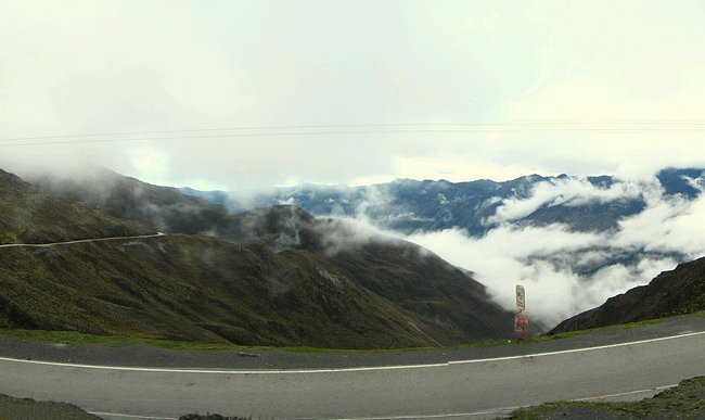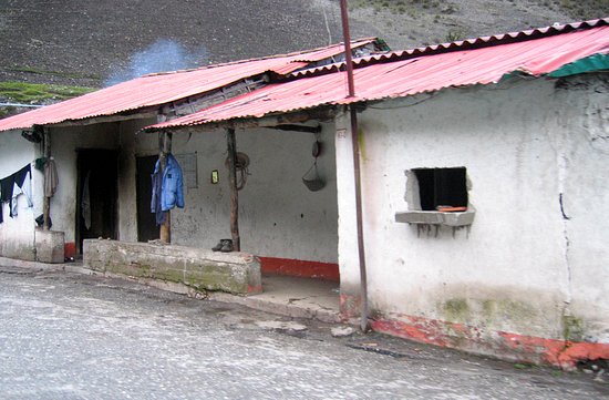 From whence we came. As you begin driving into the Andes you can see unmistakable changes in the scenery. Along the Transandean highway you pass stone-strewn fields growing wheat and coffee, and tile-roof houses clinging to hillsides before reaching the páramo, the arid region above the timberline at about 3500 meters (11500 feet).