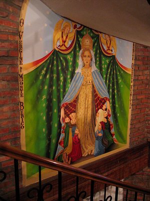 There were several large wall paintings around the central staircase.