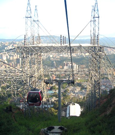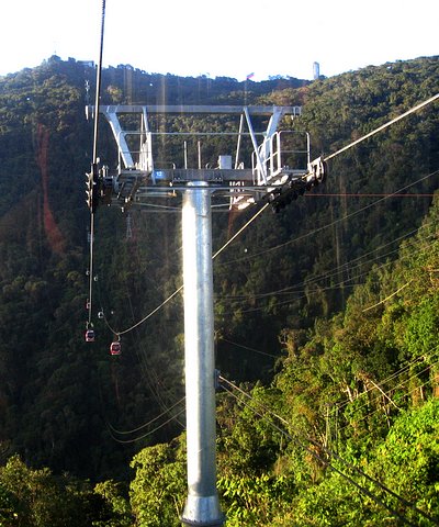 The Ávila Cable Car was built in 1957. When I was in Caracas in 2001 it was not running, but they were working on it. US$180,000,000 was spent getting it, and the park area at the top, the Parque Ávila Mágica, up and running after 20 years of being shutdown. The cable car starts in Maripérez and ascends from 1000 meters (3280 feet -- the elevation of Caracas) to 2100 meters (6889 feet) roughly to the top of the peak, El Ávila Peak (the peak in left portion of the picture above), and the Humboldt Hotel. The original system had another teleférico running from the top of the mountain down to the city of La Guaira on the sea side (north) of the mountains. There are plans to restart that line too.