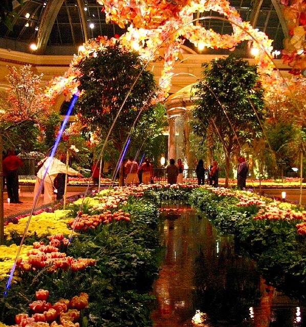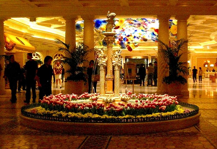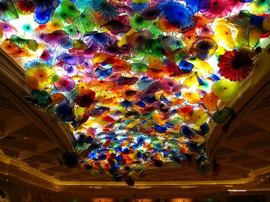 Inside the lobby of the Bellagio is the million-dollar ceiling. It is a sculpture of a field of glass flowers and it cost about $1,000,000. Cheap when the whole casino cost billions of dollars to build.