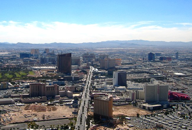 Above is the view down Las Vegas Blvd from the north end. The large building to the left of the boulevard is the new Steve Wynn resort that was still under construction when I took this picture. It's open now and its huge.