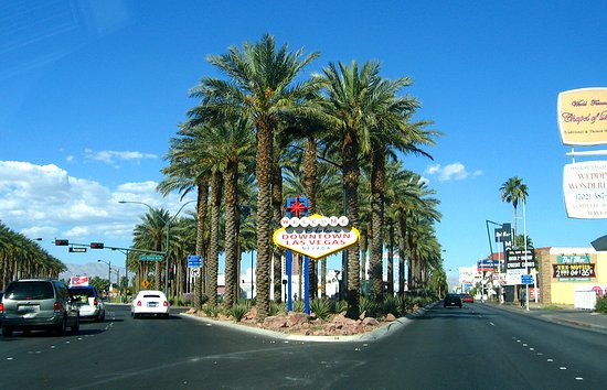 This isn't the famous Welcome to Las Vegas sign. This is the not quite so famous Welcome to Downtown Las Vegas sign.