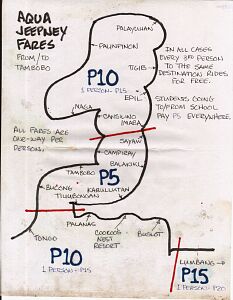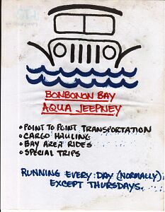 If you are going to get anywhere in the Philippines on land you are probably going to do it in a jeepney. Jeepneys are everywhere and are the basic form of land transportation in the Philippines. So when it came time to come up with a name for my 'people and stuff hauling boat service' there was only one choice -- Aqua Jeepney.