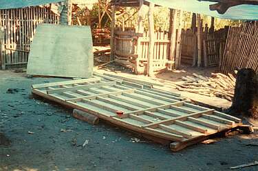 The first trick was finding a spot flat enough to build on that was not too far from the water, but that was also not too close to where the action was. I used the back yard of some friends in the back of the bay in the barrio of Palinpinon. The area was just big enough for the finished product, and was about five meters from the water.