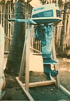 I needed an engine. The plan was always for a small outboard. Using it would keep the boat maneuverable, give me reverse capability, and make it possible to get in close to everything since the motor could be ran tilted up slightly. Fortunately one of the yachts in the bay sold me a 15HP Suzuki. He had bought the engine used several years before, and I used it for over a year, and neither one of us had any problems with it. It was very reliable.