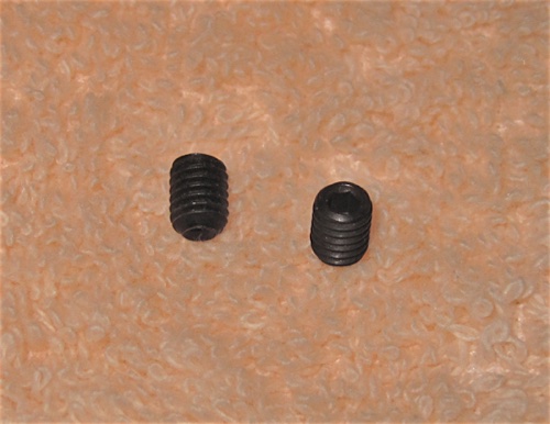To start I put a dab of medium Loctite on the set screws and ran them into the holes in the ring. The holes are 1/4" deep and the set screws are 1/4" long, so I screwed them in all the way, then back out 1-1/2 turns. This makes them stick up into the holes on the Sol-Searcher a bit and provides a little mechanical support to keep the finder from sliding back and forth. The next size up in set screws that I could find were 3/8" in length, which would have left about 1/8" sticking out. That seemed like a bit much, and I didn't want to leave the screws all of the way in to where they touched the telescope tube, so backing them out 1-1/2 turns would have made them stick out even more. If I left them screwed all of the way in THEY WOULD HAVE SCRATCHED THE PAINT, OK?? (I'm still at that stage of ownership.)