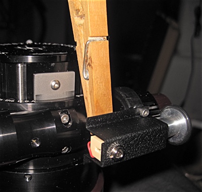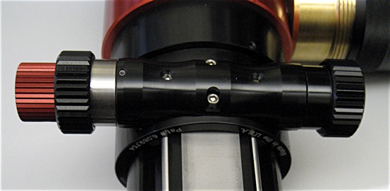 For the Feather Touch Focuser on my Lunt the MotoFocus system doesn't use gears, or belts, or O-rings posing as belts, but uses an O-ring posing as a rubber wheel that simply rests against the fine focus control knob and spins it just using friction. The theory is that when you want to manually change the focus adjustment you can just grab the knob and it will slip right past the parked O-ring wheel. Hold on to that thought.
