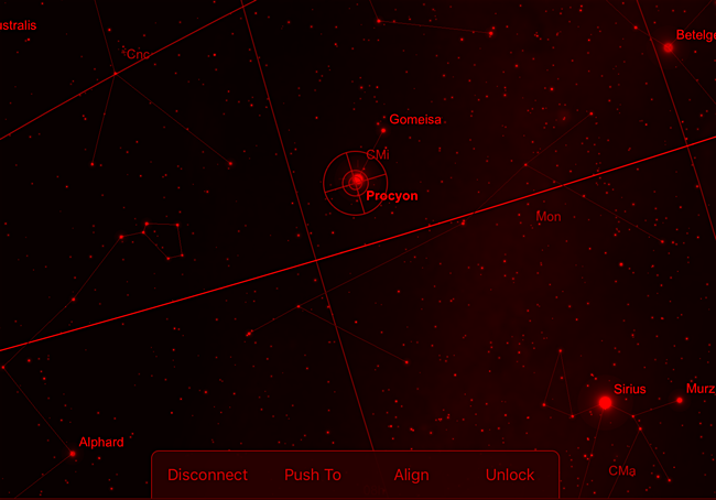 I tapped on Sirius, swung the scope over to there, and told SkySafari to use
