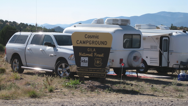 I went down US180 back in May when I was going from Socorro, New Mexico to Silver City for a night photography workshop. I passed the simple sign "<-- Cosmic Campground" out on the highway and thought to myself, "Oh dear, Taos and Santa Fe comes to Catron County." That would be kinda like mixing oil and water with the oil on fire. Didn't think much more about it and just kept on driving. Almost six months later I ended up there! It turns out the name doesn't have anything to do with Taos or Santa Fe, and now it makes perfect sense.