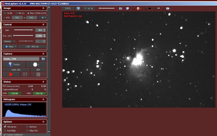 Just for fun I replaced the R2 camera with my ZWO ASI174MM camera. Larger