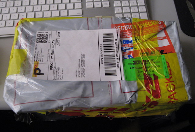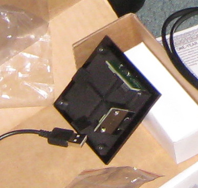 Bing, bang, boom! The cables have to connect to something, so I got a new Nexus II something at the same time to connect them to. With the internal battery in this unit there are no other wires to deal with. The US flag covers a LARGE font "MADE IN USA" ingraving, and the Nexus II covers the flag. It's unavoidable. There were only two sides on the mount that didn't have holes or knobs, and now the encoder plate made one go away. Four squares of Velcro did the trick.