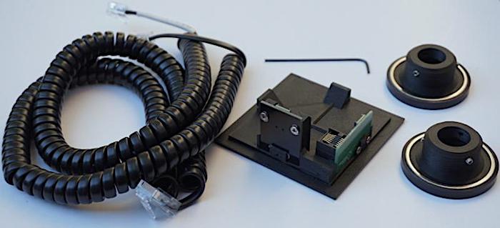 The two coily cables in the parts picture do not actually come with the kit. The supplied cables are just regualr flat ones. You let Serge know how long you want them to be when you order. I told him to make them a foot long. They could have been just a couple inces longer. It's farther from the front of the cube to the back of the cube than I thought it was, but they worked anyway. There wasn't going to be any relative movement between the encoder plate and the unit the encoders would plug into, so I was able to just make them a fixed length.