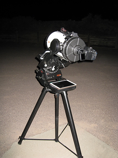 While I was at the observatory the perfessionals were using the big scopes to do some asteroid research. While making one of their trips between the telescope buldings they suggested, since I was taking pictures, a comparison of size of The Great Hercules Cluster, or M13, and Omega Centauri would fun. Sounded good to me. Above was a 20 second exposure of M13. See? Even 20 seconds was long enough to capture smeared stars with the focal length and bad polar alignment. It didn't help that every time I pressed the shutter release the breeze would pick up, or so it seemed.